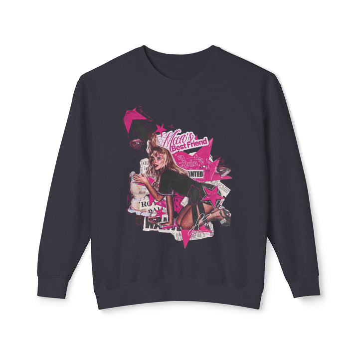 Sabrina Carpenter — pop’s golden girl with a playful edge and powerhouse voice. Known for hits like Espresso and Feather, she mixes confidence, charm, and wit into every lyric. This sweatshirt celebrates her fun, fearless energy and effortlessly iconic style.