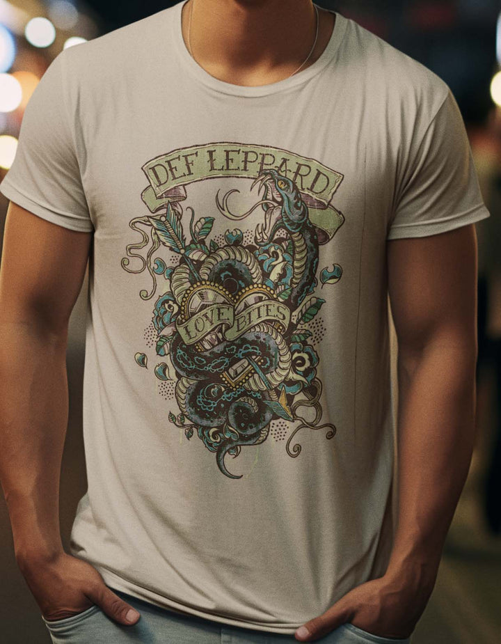 With over 100 million albums sold, in 2019 Def Leppard were inducted into the Rock & Roll hall of fame. An iconic British band that played a significant role in defining the the sound of β80s arena rock and glam metal. This shirt is a tribute to their brilliance, and a classic piece of rock history.