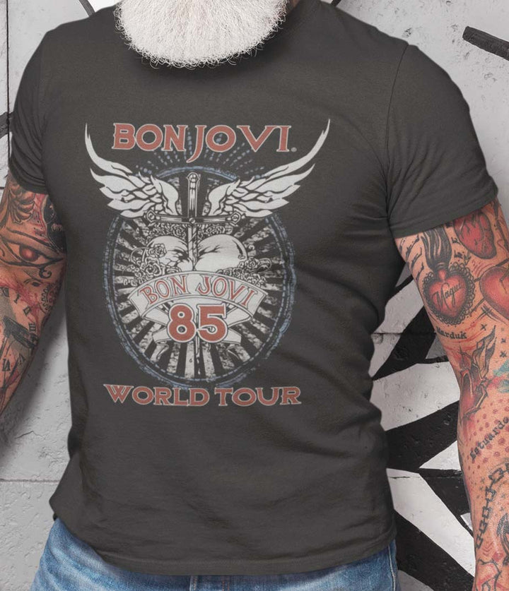 From Bon Jovi's 7500 degrees Farenheit tour that launched them into rock icon status. This shirt symbolizes 'The melting point of rock', something that Bon Jovi famously associated with their high energy concerts that would later see them achieve top 10 rock band status with their break through album; Slippery When Wet.